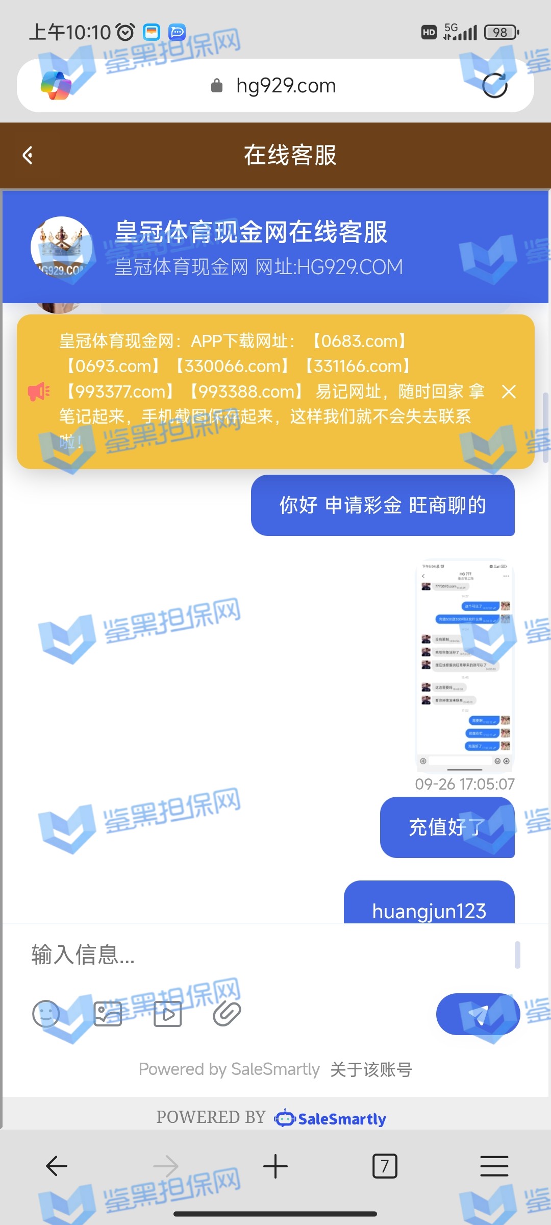 2、鉴黑担保网维权专员联系该平台相关负责人核实情况,对方表示该会员存在套彩金行为,为了避免平台损失,故不欢迎此类用户进行游戏,维权专员要求提供异常投注注单进行复查,对方无法提供,代理专员存在以高额彩金为噱头引诱用户存款,行为恶劣。