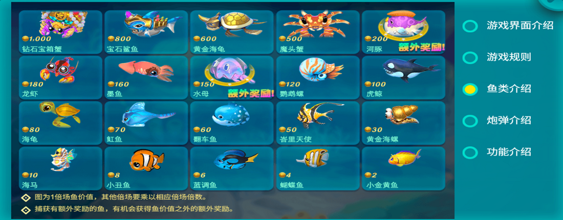 不同炮台适合的目标也不一样,低倍炮打小鱼,高倍炮打大鱼,虽然兑换捕鱼也可以,但低倍炮通常捕获大鱼成功率都是比较低的,多数时消耗的金币要比获得奖励的金币数量要多,而高倍炮打小鱼,就显得太大材小用。