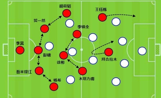 中国男篮采用大延误限制林庭谦/陈盈骏,高柏铠中路做轴找两翼空位射手,中国台北1/5挡拆破夹击打出了立体化进攻;中国男篮同样1/5挡拆惩罚高柏铠蹲坑,后卫挡拆走到罚球线试探中国台北是否采用翼侧协防,朱俊龙定点三分和赵继伟持球超远三分帮助中国男篮追平比分。