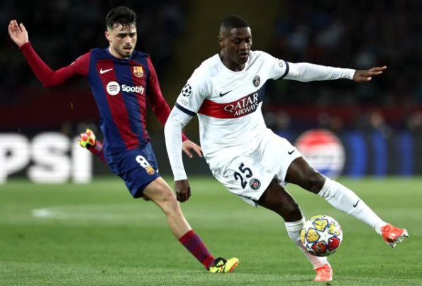 第40分钟,巴尔科拉低平球横扫门前,后点的登贝莱完成爆射破门,帮助巴黎1-1扳平比分,总比分追到3-4,重燃翻盘希望。