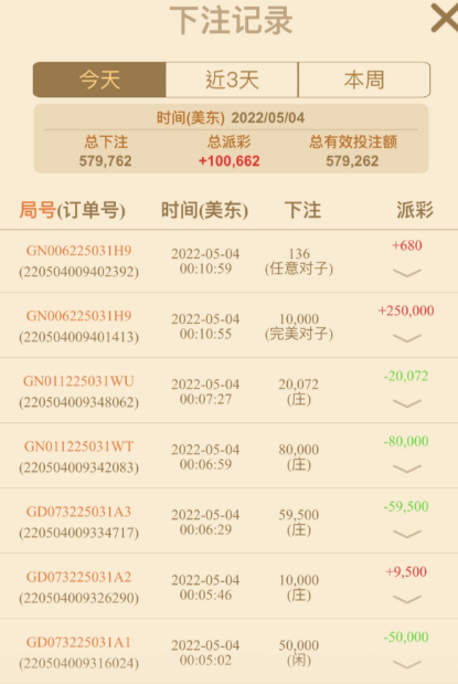 2.例:会员10号在开元棋牌场馆游戏产生10,000元负盈利,同时在欢乐棋牌场馆游戏产生20,000元负盈利,则该会员负盈利为30,000元。