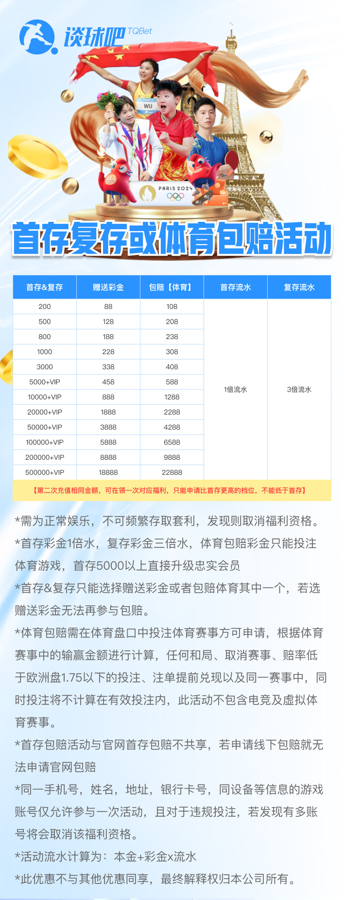5. 谈球吧保留在任何时间修改、暂停或终止本活动的权利,并不承担提前通知的义务。所有活动争议,谈球吧拥有最终解释权。