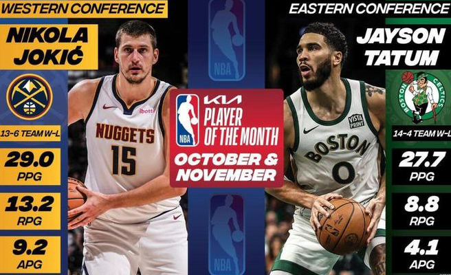 北京时间12月5日,NBA官方公布了10月-11月的月最佳球员、月最佳新秀和月最佳教练的奖项。凯尔特人的塔图姆和掘金的约基奇当选东西部月最佳球员。热火的小海梅-哈克斯和雷霆的切特-霍姆格伦当选东西部月最佳新秀。魔术的莫斯利与森林狼的芬奇当选东西部月最佳教练。